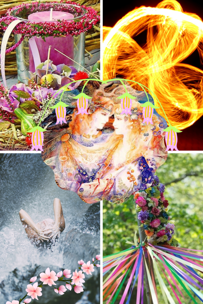 Nos ancêtres, fêtaient cette transition autour des feux de Beltaine composés de neuf essences d’arbres sacrés: aubépine, bouleau, chêne, genévrier, if, noisetier, pin, sorbier et sureau. Le bétail passait entre ces feux pour être protégé des épidémies pour toute l’année. Les cendres étaient récupérées pour fertiliser les cultures.